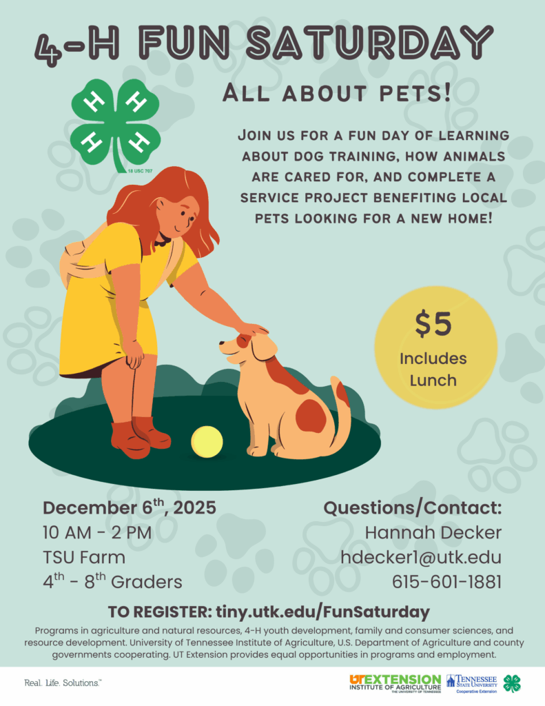 For questions or more information email Hannah Decker at hdecker1@utk.edu